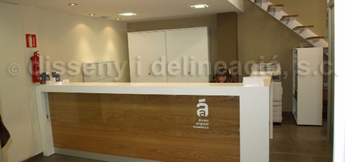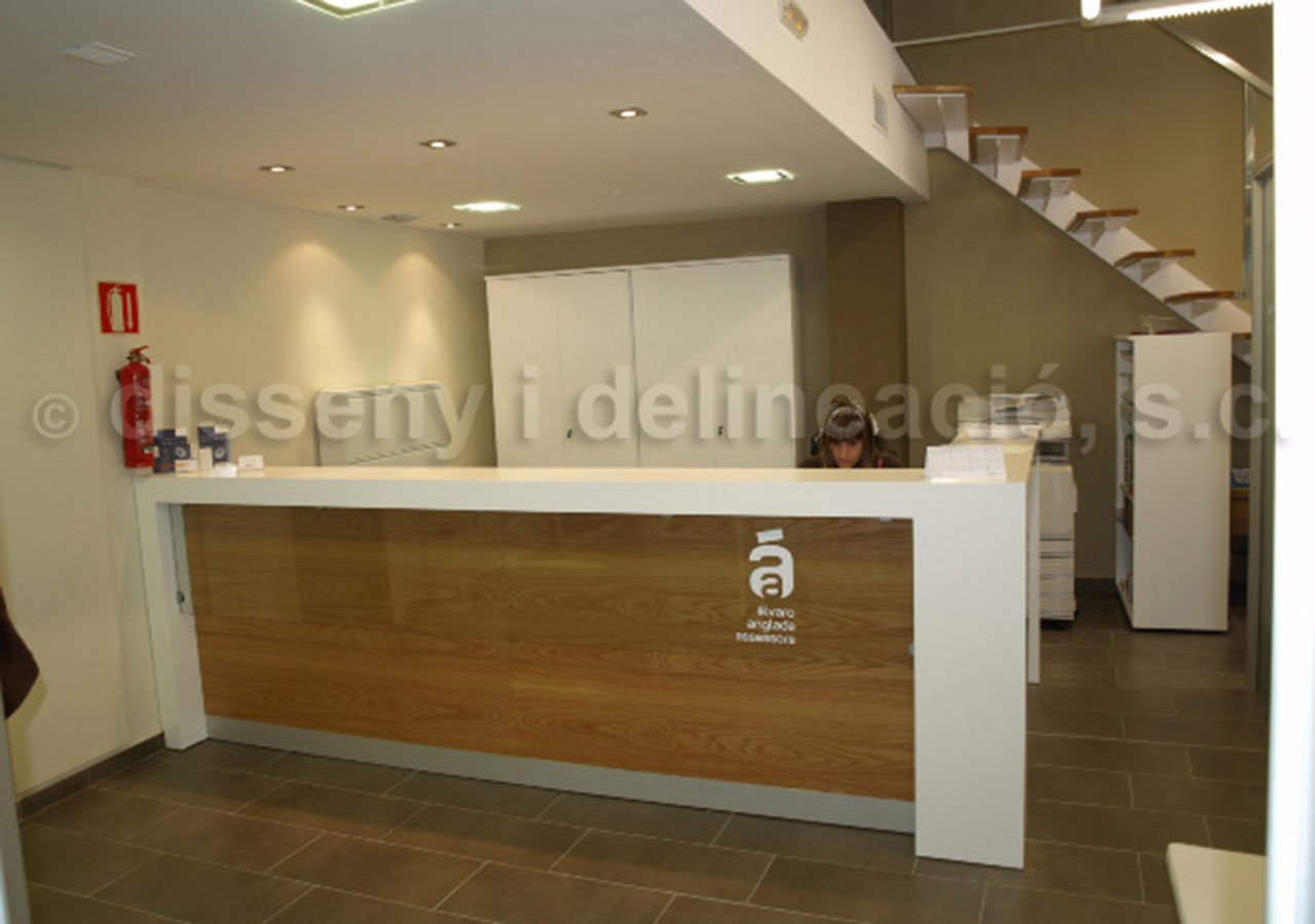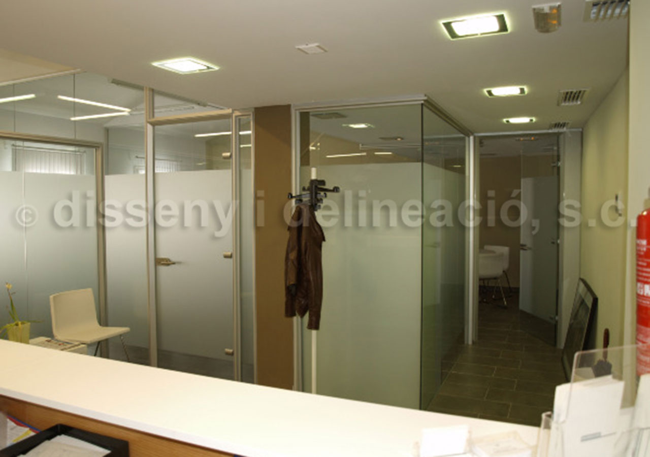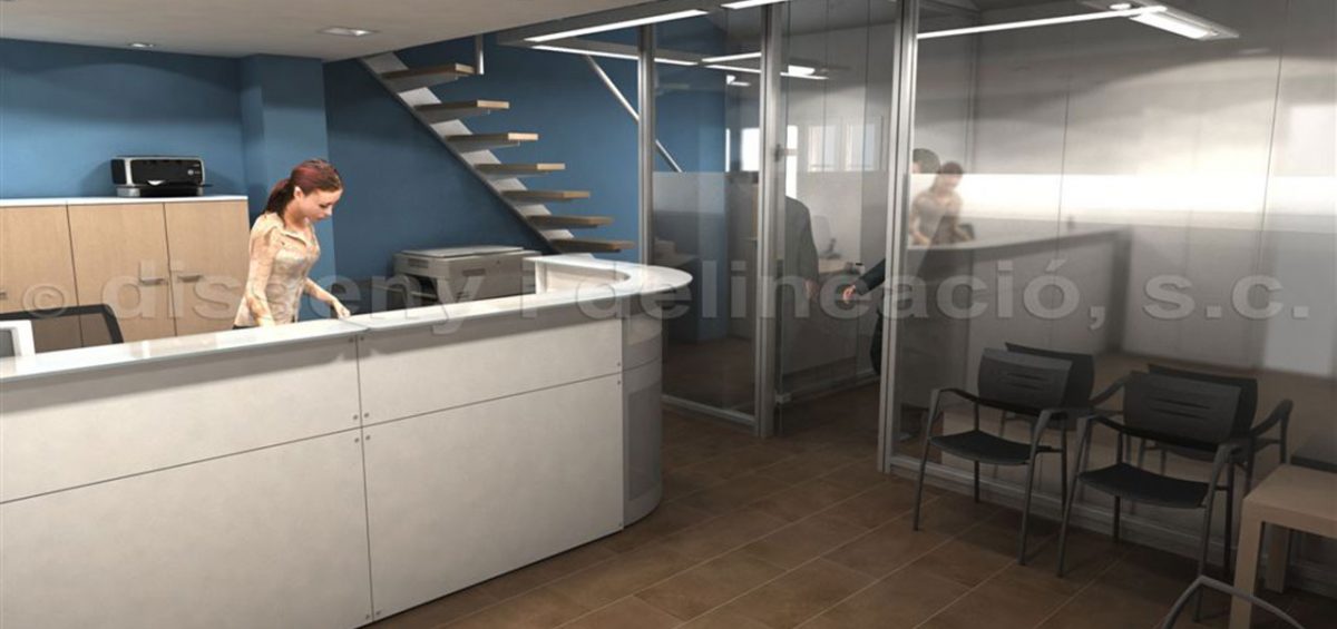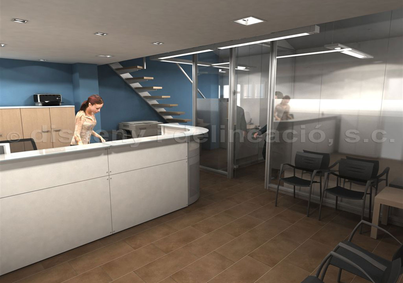 ES TRACTA DE LA REFORMA DE LES MATEIXES OFICINES EXISTENTS DEL NEGOCI, A LES QUE VOL DONAR-SE UN AIRE RENOVAT I MODERNITZAT. ES DISTRIBUEIXEN DE NOU LES ZONES I ES CANVIA EL CONCEPTE DE DESPATXOS TANCATS AMB ENVANS D’OBRA, PER ESPAIS DELIMITATS AMB MAMPARES DE VIDRE, PROPORCIONANT-LIS AIXÍ TRANSPARÈNCIA I LLUMINOSITAT. ES SUBSTITUEIX EL PAVIMENT, L’ESCALA I EL COLOR EXISTENT EN ELS PARAMENTS VERTICALS PER UNS MATERIALS, FORMATS, FORMES I TONS DE COLORS MÉS ACTUALS.