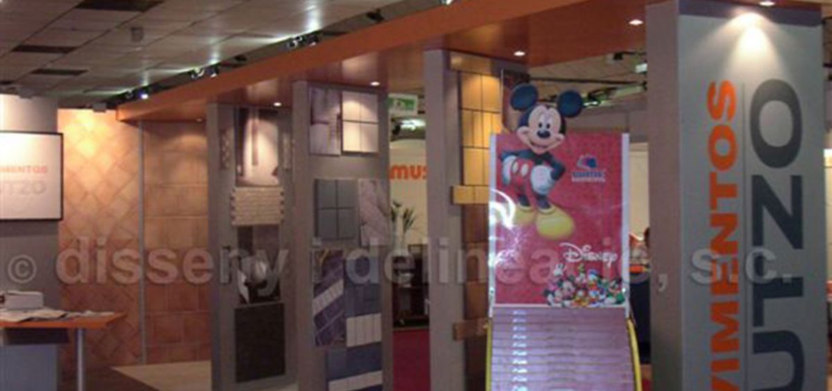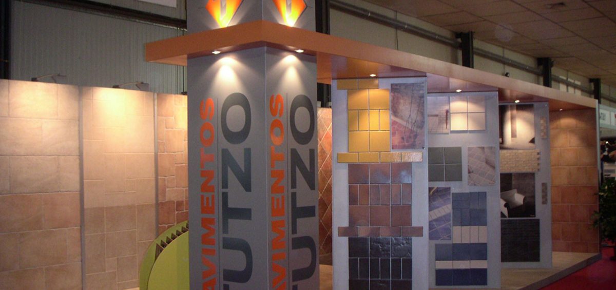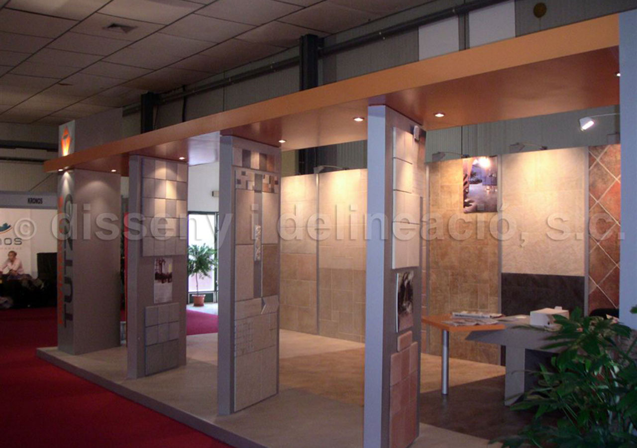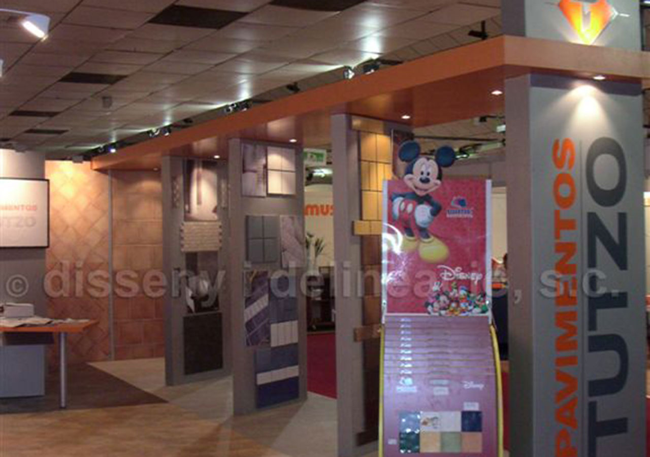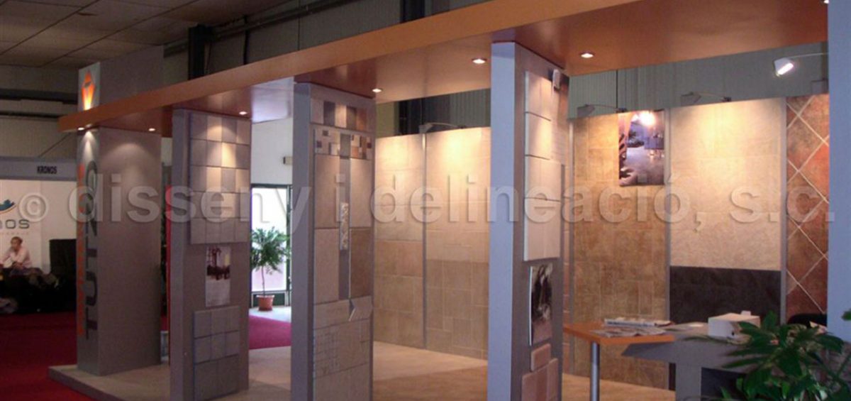 STAND D’ARQUITECTURA EFÍMERA DINTRE DE LA FIRA “HÀBITAT 2003-2004”. STAND DE FIRA REALITZAT A MIDA COM A APARADOR DE L’EMPRESA “PAVIMENTOS TUTZÓ”. S’APROFITA LA BONA UBICACIÓ DE L’ESPAI A L’ENTRADA DEL RECINTE I FENT CANTONADA.