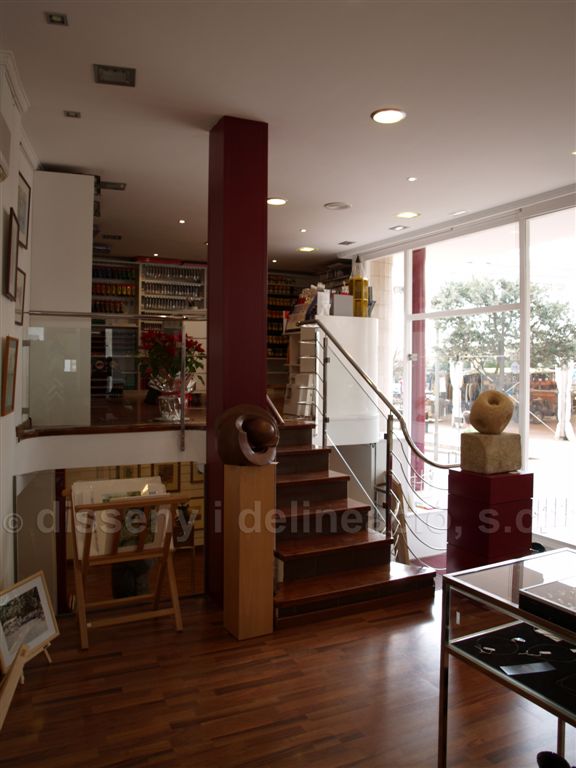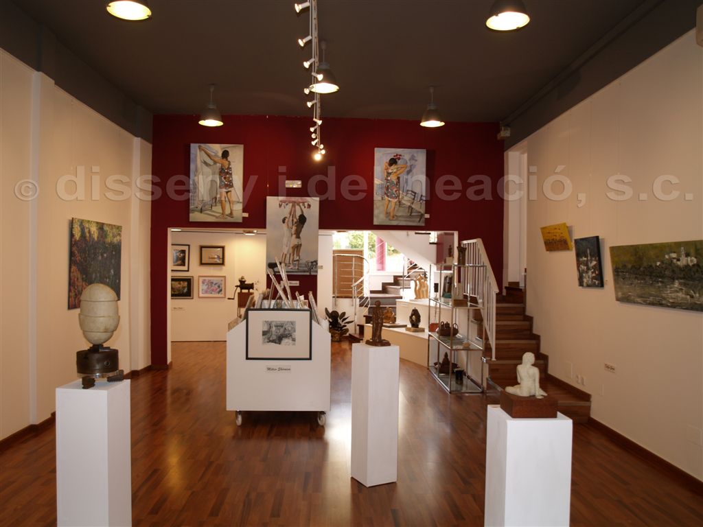 NOVA INTERVENCIÓ EN UN LOCAL ON JA HI HAVIEM INTERVINGUT PER CONVERTIR-LO EN GALERIA D’ART.  EN AQUEST CAS ES FARÀ UN CANVI DE COLOR UTILITZANT EL BLANC COM A COLOR DE BASE PER DONAR IMPORTÀNCIA A LES OBRES QUE S’HI EXPOSIN. ES CONTRASTARÀ AMB EL COLOR VERMELL GRANA, (LLIGAT A LA IMATGE CORPORATIVA), I EN ELS ELEMENTS COM ARA ELS PILARS METÀL·LICS EXISTENTS.